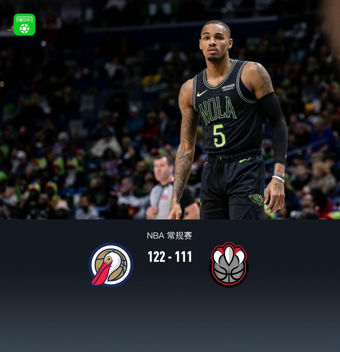 开云APP-鹈鹕122-111猛龙,墨菲28+7,穆雷27分,英格拉姆22分